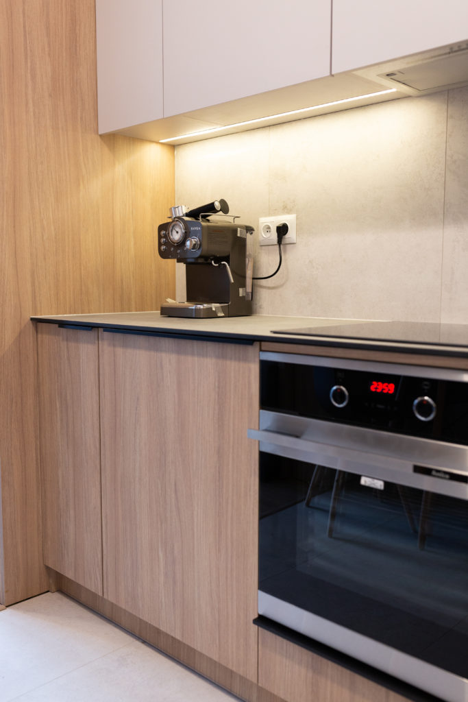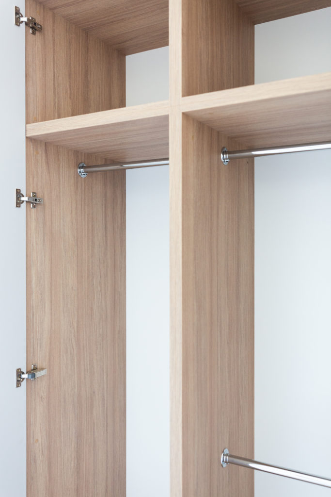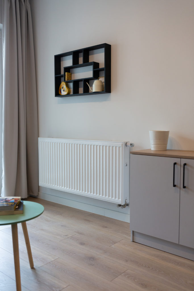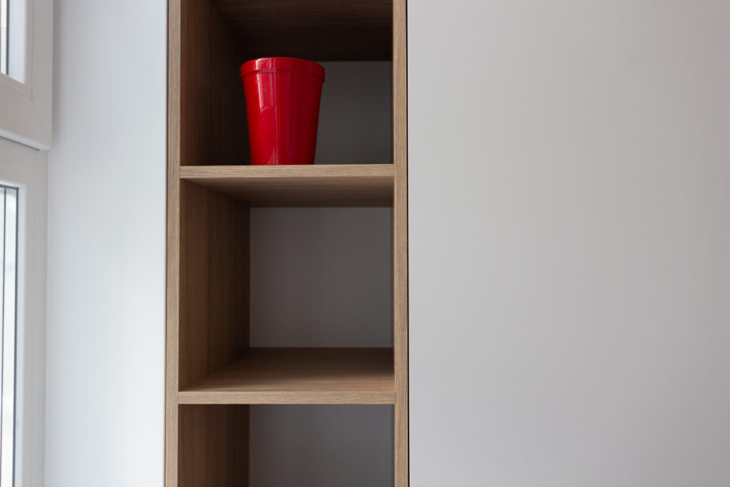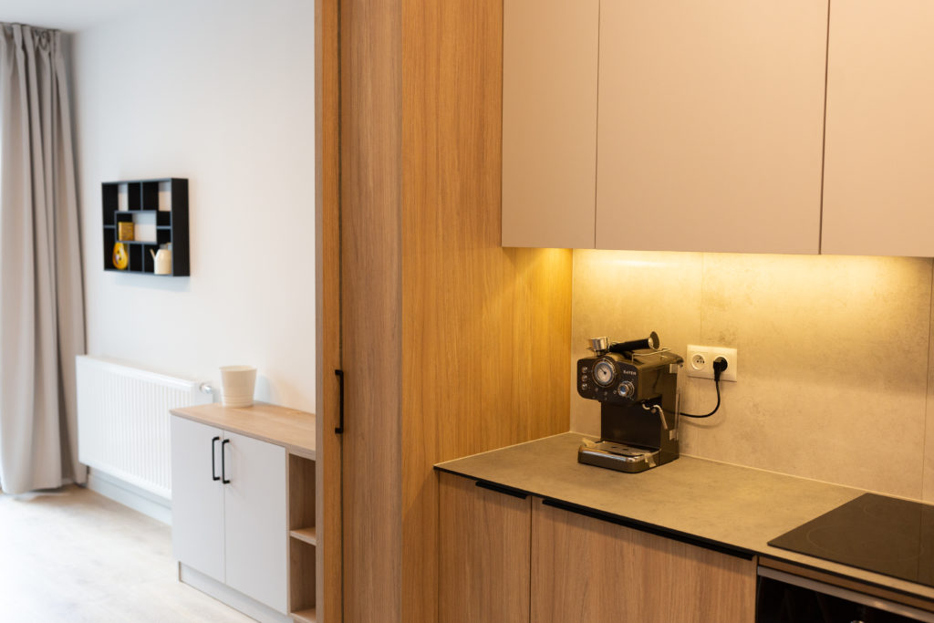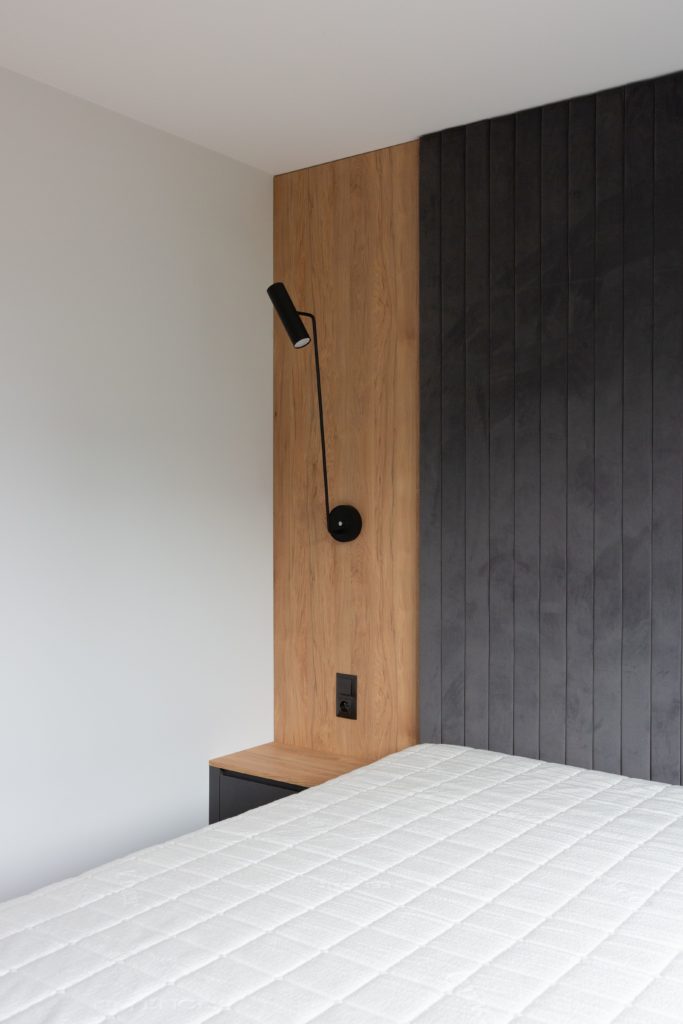 Kolejna realizacja mieszkania na wynajem. Zaprojektowaliśmy jasne, nowoczesne wnętrza. Zadbaliśmy o odpowiednią przestrzeń dla każdego i wygodę użytkowania. Kluczem do sukcesu w przypadku tej aranżacji jest oryginalna zabudowa meblowa, w tym przesuwne drzwi między kuchnią a salonem.