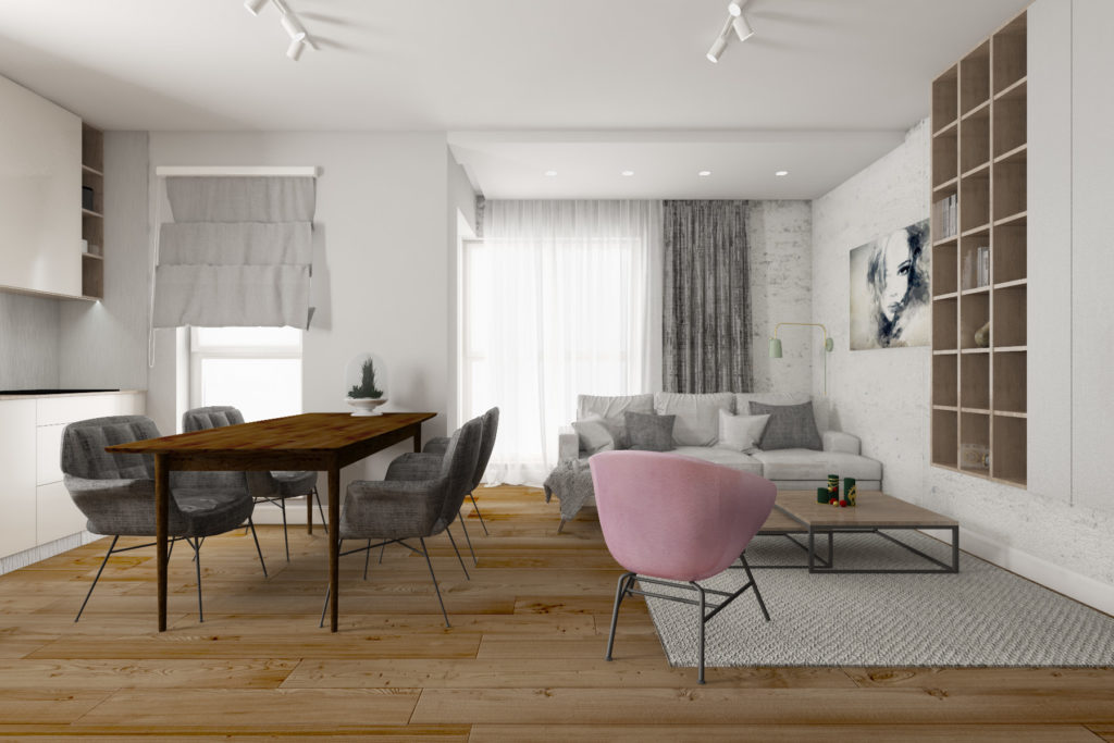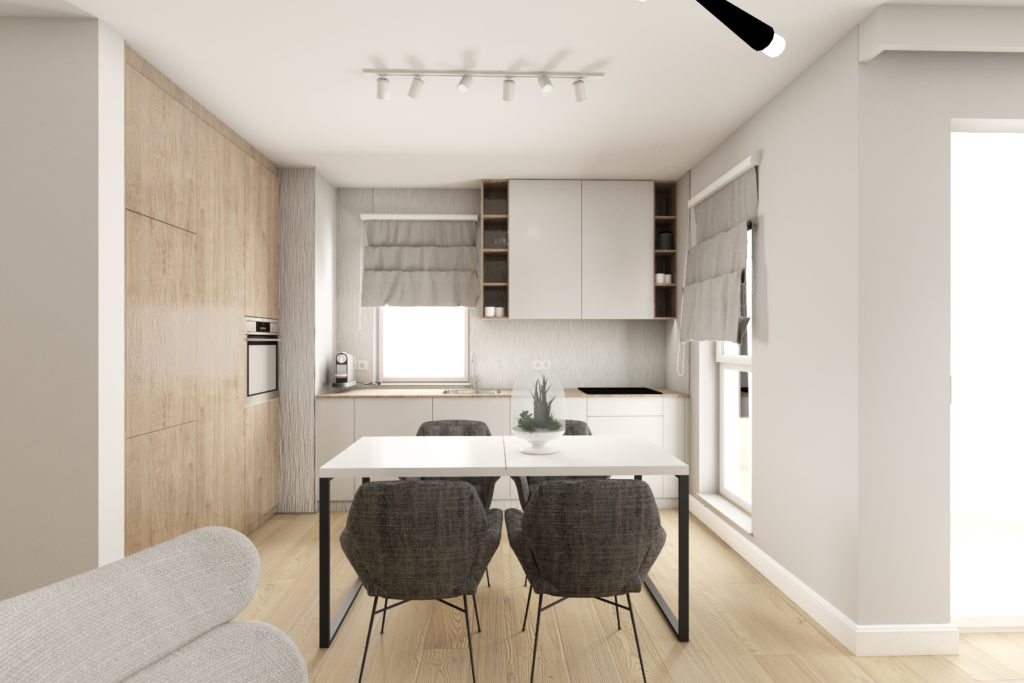 Wykończenie apartamentu, projekt i meble na wymiar – ul. Augustiańska 50 m2