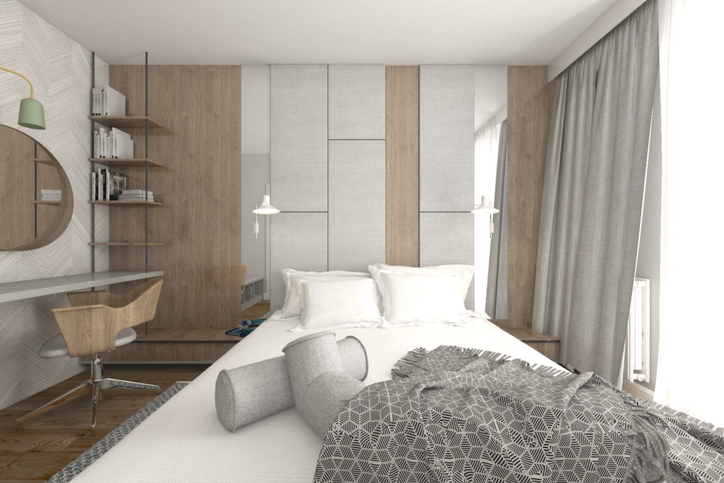 Piękny projekt w nowo powstałej klimatycznej kamienicy na krakowskim Kazimierzu wraz z realizacją przez naszą firmę. Na wizualizacji można porównać, jaki wpływ na efekt końcowy ma np. dobranie odpowiedniego oświetlenia. Całe mieszkanie zaprojektowano w nowoczesnym stylu, dbając jednocześnie o funkcjonalność poszczególnych pomieszczeń.