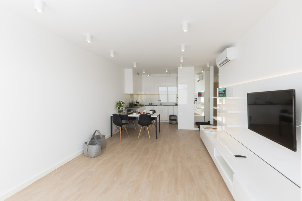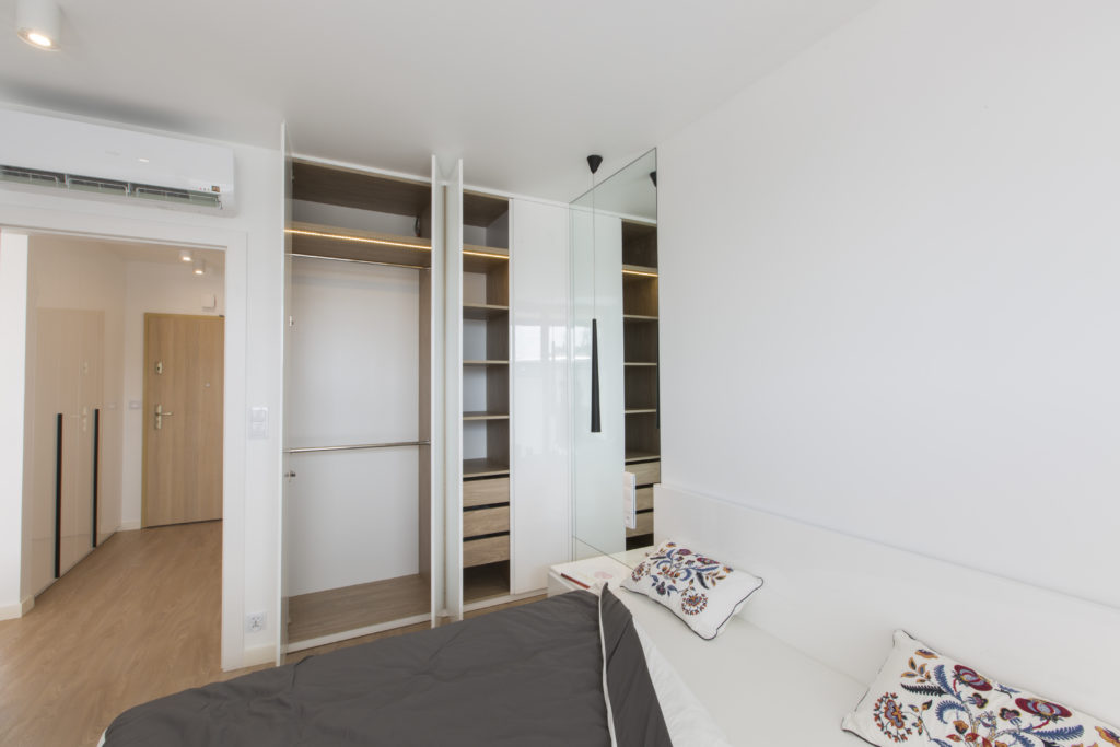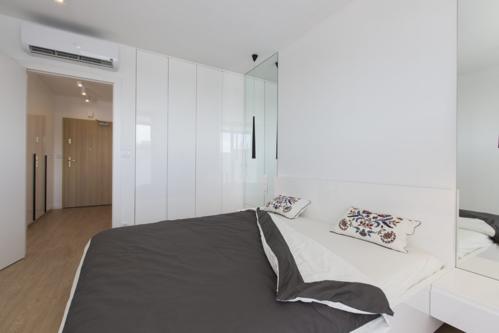 Mieszkanie zaprojektowane i wykonane pod klucz przez naszą firmę. Powstało nowoczesne, funkcjonalne, jasne wnętrze. Proste, nowoczesne meble tworzą doskonałą bazę pod indywidualną aranżację właścicieli. Szczególny nacisk położyliśmy na dobór wysokiej jakości materiałów wykończeniowych i dokładne wykonanie prac remontowych.