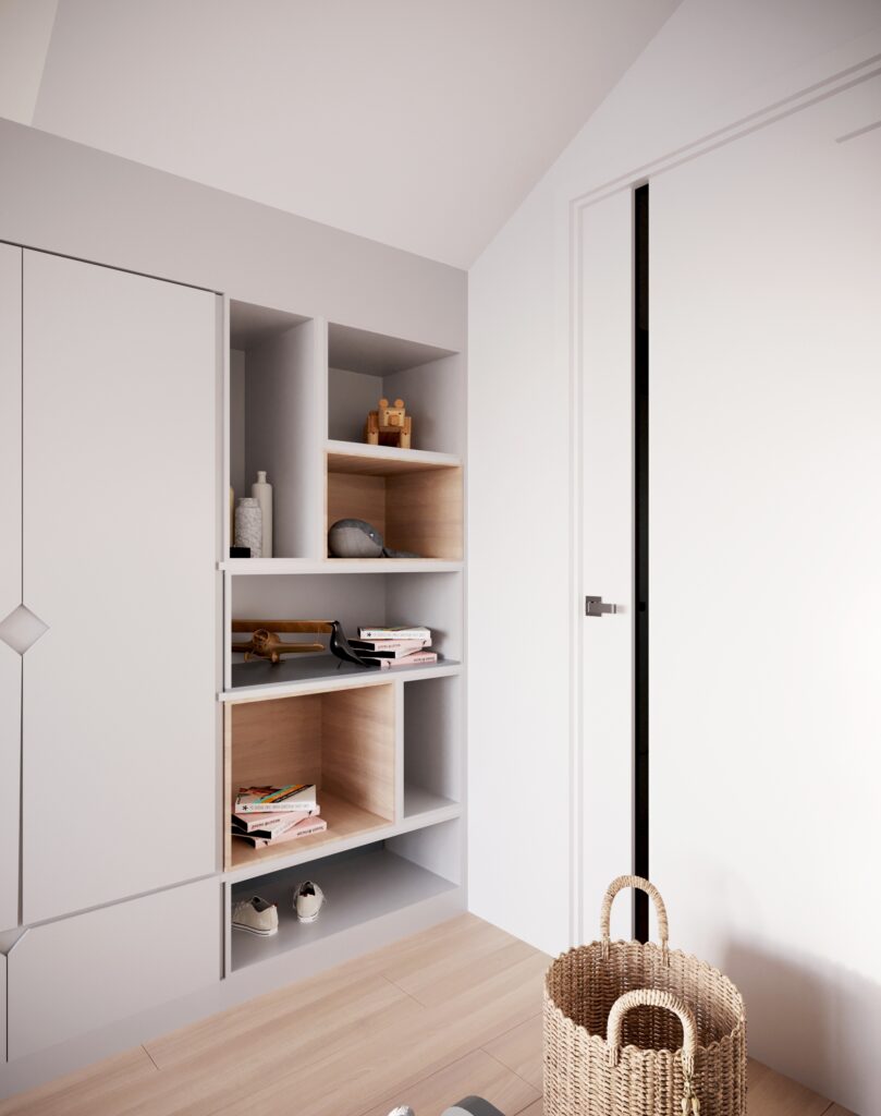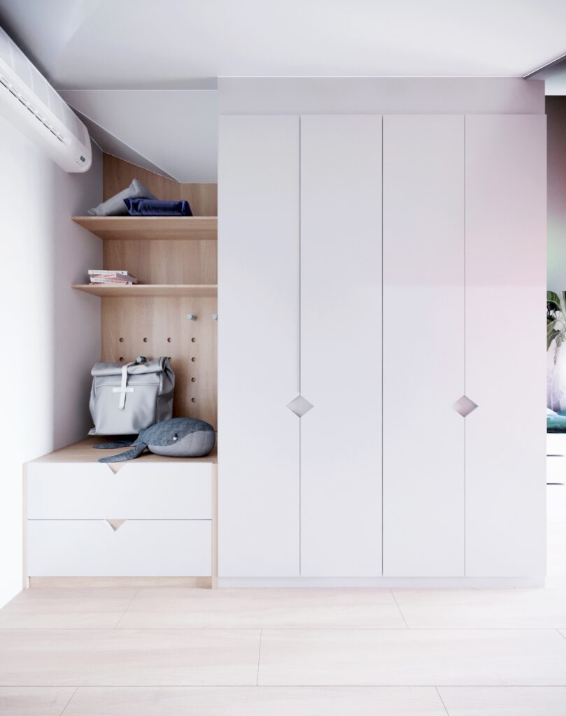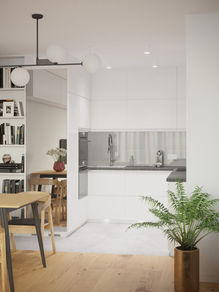 Projekt mieszkania w stylu skandynawskim. Zaaranżowaliśmy proste, ale niezwykle funkcjonalne pomieszczenia z użyciem nowoczesnych rozwiązań. W takich niewielkich przestrzeniach najlepiej widać, jakie korzyści dają indywidualnie zaprojektowane meble na wymiar.